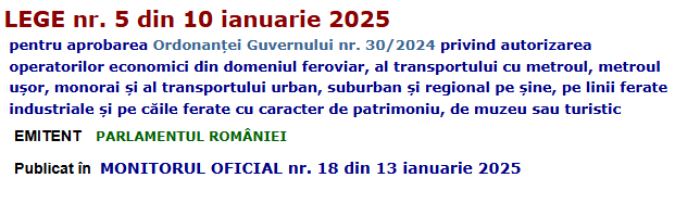 Hotărâre privind avizarea documentației tehnice înaintate de operatorii economici din domeniul feroviar, transportului cu metroul, metroul ușor, monorai și transportului urban, suburban și regional pe șine, pe linii ferate industriale și pe căile ferate cu caracter de patrimoniu, de muzeu sau turistic și verificarea respectării acestor cerințe. Monitorul Oficial, Partea I, nr. 515 / 3 Iunie 2025. Hotărâre…