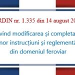 ORDIN nr. 1.335 din 14 august 2025 privind modificarea și completarea unor instrucțiuni și reglementări din domeniul feroviar ministrul transporturilor și infrastructurii emite următorul ordin: Articolul I Ordinul ministrului lucrărilor publice, transporturilor și locuinței nr. 1.186/2001 pentru aprobarea Regulamentului de exploatare tehnică feroviară nr. 002, publicat în Monitorul Oficial al României, Partea I, nr. 681…